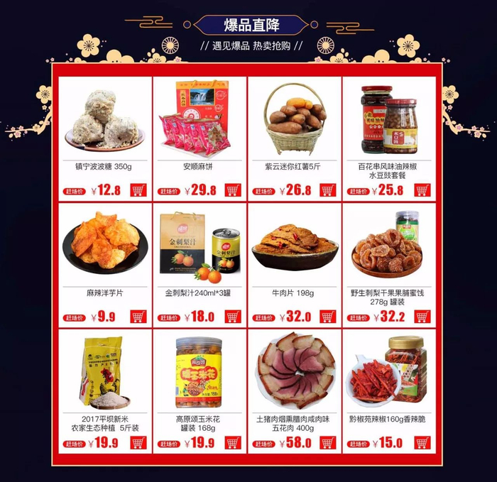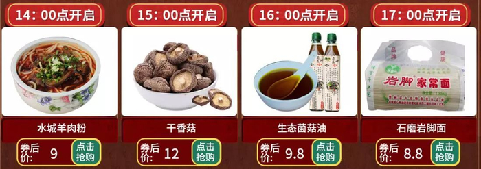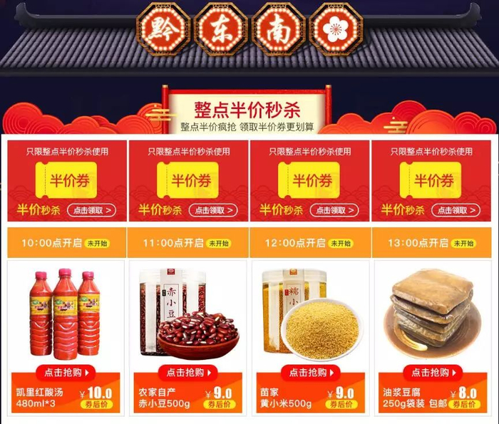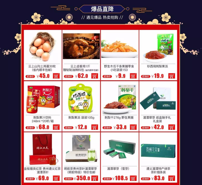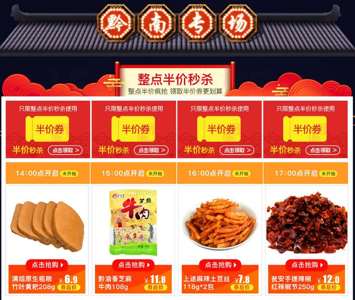 每天12个小时的半价秒杀,分分钟带您领略黔贵大地的丰富物产魅力。下面就为大家盘点本次“网络赶场节”为大家备了哪些好货!