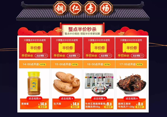 如果用一个关键词来概括铜仁会场的半价秒杀,那一定是养生二字。蜂蜜、 生天麻、泡椒和牛肉干,的确很养生。