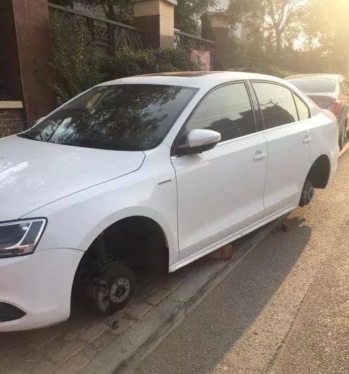 11月6日一早,冯先生像往常走出小区找到自己停车的位置,准备开车上班。他被眼前的一幕惊呆了,爱车的四个轮胎不见了。