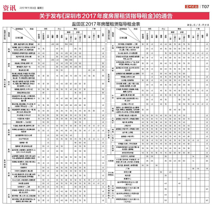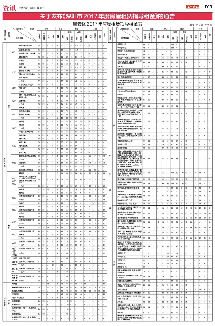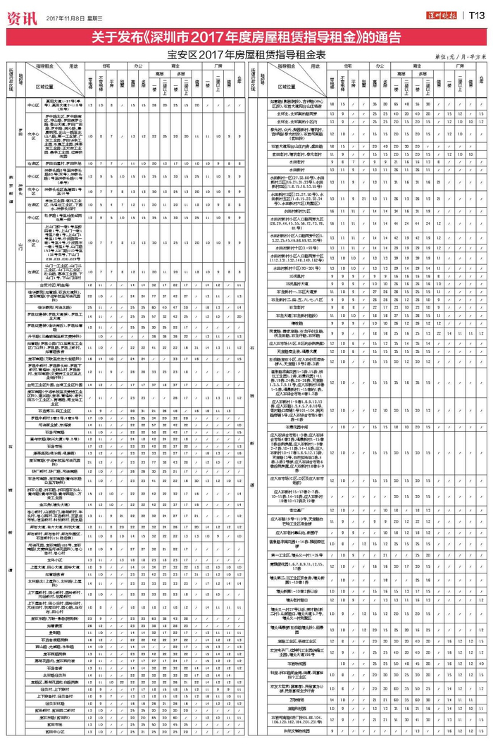 今日,被称为“深圳官方租房指南”的《深圳市2017年房屋租赁指导租金》(下称《租金表》)正式出炉,教你避开租房陷阱,不被“价格战”迷惑。《租金表》由深圳市房屋租赁管理办公室采集全市十区(新区)各街道各地段价格测算得出,能正确反映深圳各地段租金价格的真实水平和变动趋势。
