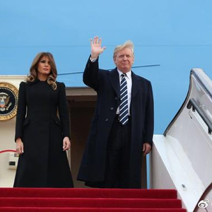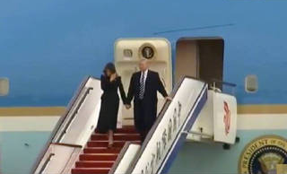 特朗普一行抵达北京 国务委员杨洁篪到机场迎接