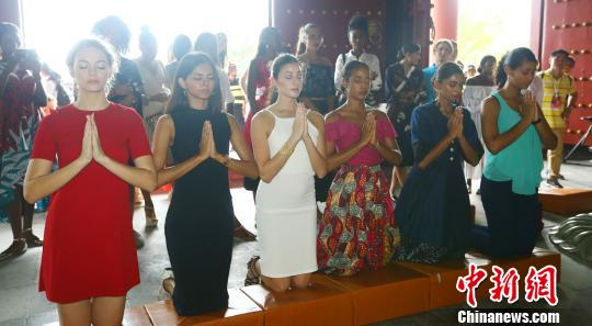 世界小姐三亚“学功夫”“抱佛脚” 体验中国文化