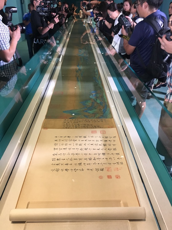 从艺术品味多元化的今天看来,少年天才王希孟的《千里江山图》,是难得一见的北宋青绿山水长卷,虽不能完全符合徽庙的艺术理想与品味,但仍是唐代“外师造化,中得心源”美学典范的代表作之一,人与画,均为绝世稀有,列为国家一级重宝,谁曰不宜?