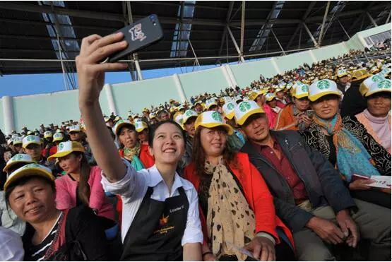 现场的咖啡大师和咖农们,虽然平时各有自己的生活空间,履行的使命职责也各不相同,但在这场星巴克云南生豆供应商大会,大家的身份就像星巴克平日里一样,都是一家人,都是亲密的伙伴。所有咖农和伙伴共同拍了张大合影,大家一起挥舞着星巴克的帽子,一起喊出‘加油云南走向世界’、‘手牵手星连心’,喊出来的音量足以表达彼此都坚定的决心。