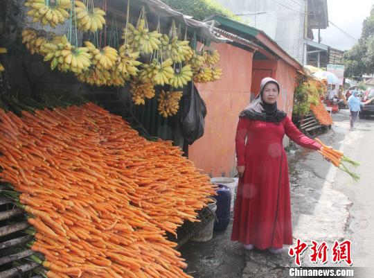 动物园带动了附近村庄经济的发展。图为当地村民在叫卖野生动物喜欢吃的胡萝卜。 林永传 摄