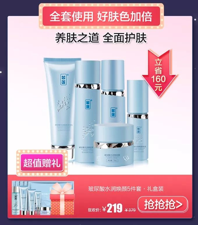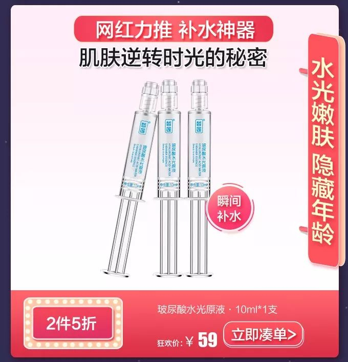 本次双十一全民狂欢购物节,玻尿酸系列产品满两件5折起;满199减70、满299减100、满399减120!(详情点击“阅读原文”!)