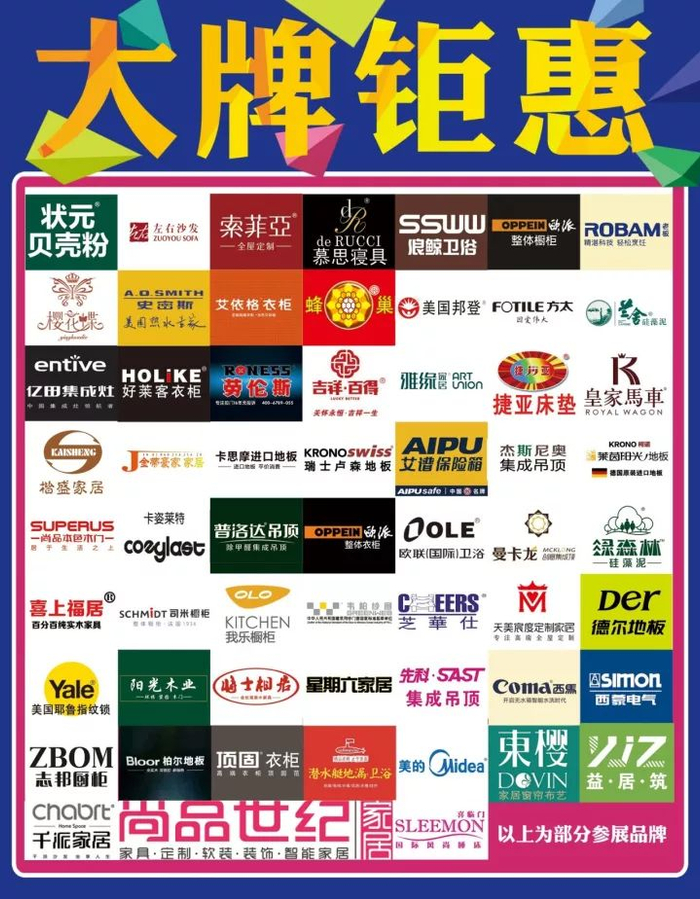 艾谱保险柜、潜水艇地漏、耶鲁指纹锁、樱花蝶布艺、西蒙电气、卓高美缝剂、益居筑家具贴膜、樱花蝶窗帘、东樱家居