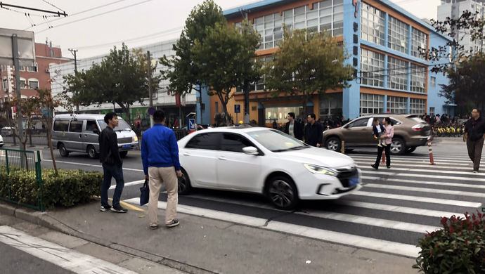 不过,解放日报·上观新闻记者在两个路口的蹲守中,也发现一些令人欣喜的情景:已有一部分车辆能做到礼让行人,看到行人主动刹停,待行人完全通过后再通行。