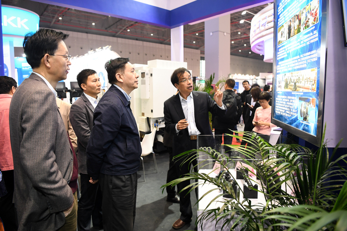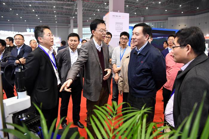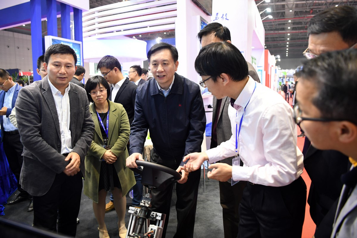 开幕式当天下午,上海交大党委书记姜斯宪参观了交大展厅,听取每一个参展项目负责人对各自项目的研发过程、应用情况、经济与社会效益的详细介绍。姜斯宪对学校参展的应用型技术成果和参展工作给予充分肯定,鼓励项目组人员为国家战略和产业创新与转型贡献交大人的智慧与力量,弘扬交大人兢兢业业的科研团队协作精神和服务国家战略精神。科研院常务副院长关新平、科技合作办主任李喆陪同。