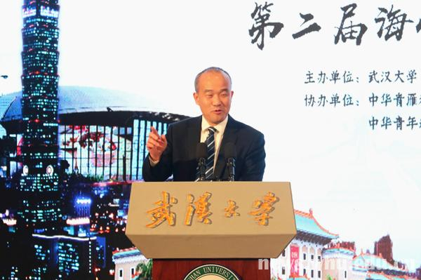 窦贤康向与会的两岸嘉宾和青年学生表示热烈欢迎。他指出,血浓于水的亲情和共同的历史文化是两岸同胞的精神纽带。他还介绍了武汉大学的发展历程,尤其是21世纪以来,武汉大学与台湾地区的教育交流与合作日益深化,在弘扬中华文化、增加海峡两岸文化交流研究等方面做出了积极贡献。增进两岸同胞福祉,把民族命运牢牢掌握在自己手中,是两岸同胞的共同愿望和时代发展的潮流大势。青年是国家的希望和民族的未来,海峡两岸青年东湖论坛的参会主体是青年、核心主旨是交流。他对全体青年提出三点希望:交流互信,做深化合作的先行者;心灵契合,做中华文化的传承者;携手共进,做民族复兴的奋进者。