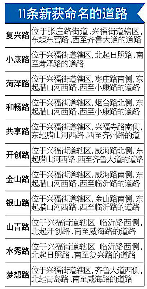 西客站片区迟迟没有正式名字的11条道路终于有了“大名”。近日济南市政府办公厅印发《关于同意复兴路等道路命名的批复》,这11条道路被命名为复兴路、小康路、梦想路等。