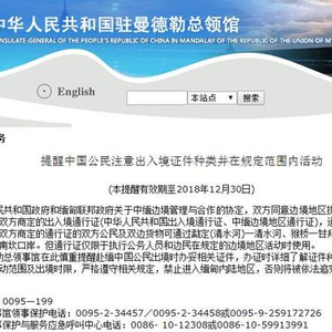 原标题:中领馆吁赴缅甸中国公民注意证件种类及活动范围