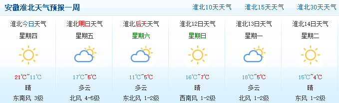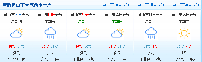 部分城市天气预报