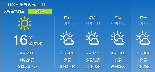 冷空气光临合肥期间,主要带来的是降温,具体来说,9日晴转多云,11-24℃;10日多云,8-22℃;11日多云,8-17℃。