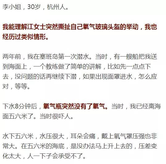 昨天,记者采访了两位曾在海外潜过水的姑娘,她们表示自己都有过惊心动魄的经历。