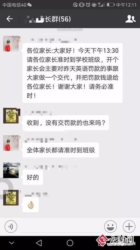 ▲微信群通知将开家长会并退还罚款