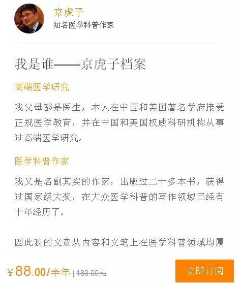 以医学科普作家@京虎子 为例,他提供的专属会员服务包括: