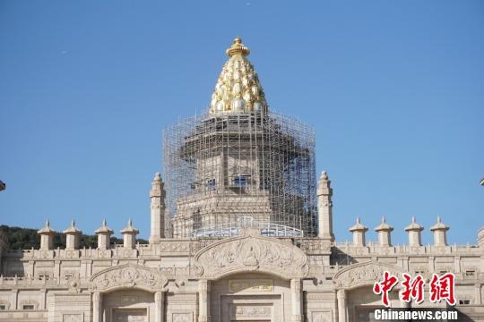 图为灵山梵宫的顶部,尚有未拆除的脚手架。 孙权 摄
