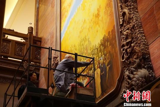 图为灵山梵宫内,油画作品仍在进一步完善。 孙权 摄