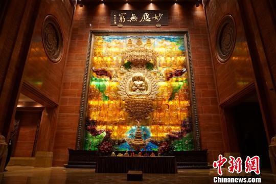 镇馆之宝琉璃雕刻的《华藏世界》放置于中间。 孙权 摄