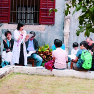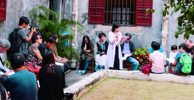 | 澳门作家穆欣欣在郑家大屋朗读作品 饶翔摄 |