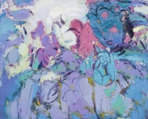 “莲”在佛学中代表净土世界、庄严妙法,被视为能同时体现过去、现在、未来的善物而处处与佛法产生关联。此次展览的创作者赵九杰是当代中国写意油画群体的代表画家,在此次展览的“观莲”系列新作中,可以看到他有意将画面语言提炼、色彩提纯、格调提高,在趋于平面化的灰色调背景和静谧的画面氛围中进行莲的布置。他还用红、黄、兰、白、黑五色系列语言分别表达喜、思、怒、悲、恐五种不同的意境,这种创作思想源于对佛教壁画的研究。他从敦煌、龟兹等地壁画中提炼出对于物象的写意性表现方法,借鉴了壁画中象征性色彩的运用方式,在传统文化的主脉上找到了从视觉色相入手进行探索创新的坐标。