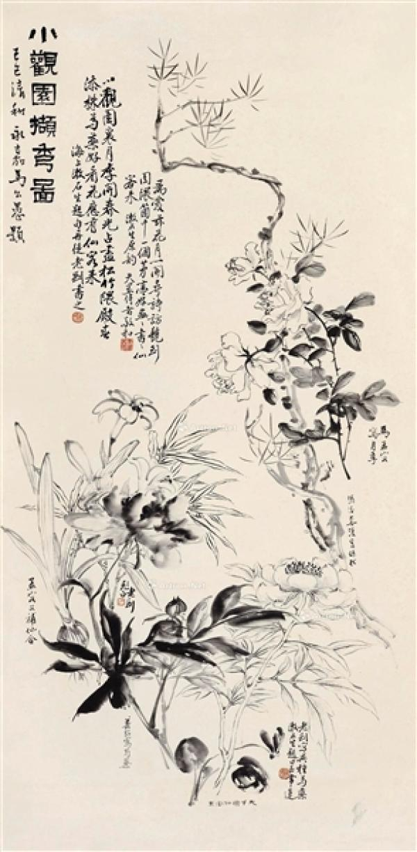 马孟容、马公愚、张大千等合作《小观园撷秀图》