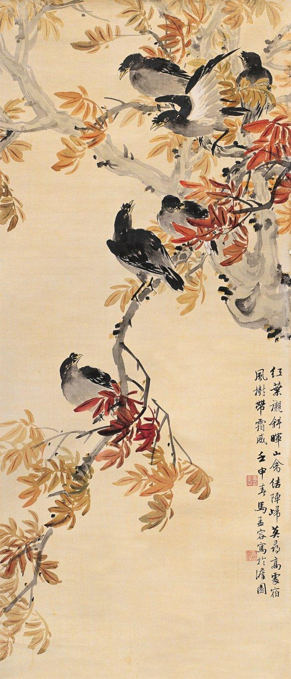 马孟容天资聪颖,笃嗜书画,志在发扬国粹,殚心于艺术事业。思合古今中外于一炉,博采众长,熔铸百家,在上世纪20年代即走出一条非常成功的中西结合的道路。曾农髯先生盛赞:“近时花鸟求其笔致高雅当推孟容”。蔡元培先生则赞他:“吾国画有文人派与画院派之别,文人之画,大都气韵生动,寄托遥深,而放者为之,或流于疏脱。画院派之作,大抵界画精细,描写逼真,而拘者为之,或失之板滞。孟容先生折衷两派而兼取其长,诚出色当行,有艺术价值之作也。”其作品在国外如巴拿马万国博览会、比利时博览会、法兰西美术展览会、日本东京绘画展览会展出,皆得最高之荣誉。因急病英年早逝,年仅41岁。于右任先生闻噩痛悼:“孟容之逝,使中国美术界文艺界俱有损失,愿爱孟容者努力,令其精神不死!”