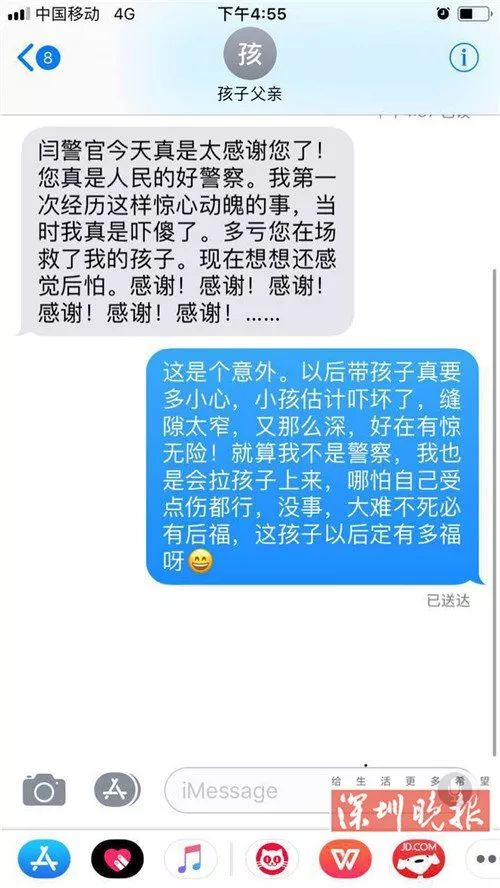 经初步检查,小女孩除了头上有小部分肿胀外并无其他状况,身体状况良好。事后女孩父亲特地发信息给闫猛,连用7个“感谢!”向其致谢。
