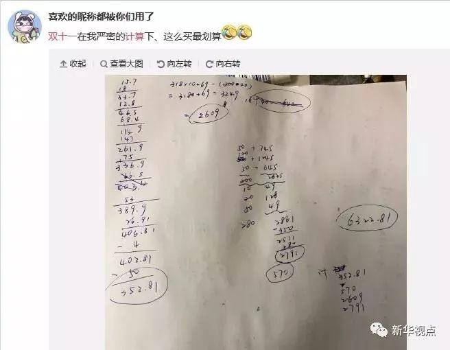微博网友晒出演算各种促销优惠之后的商品价格。(网页截图)