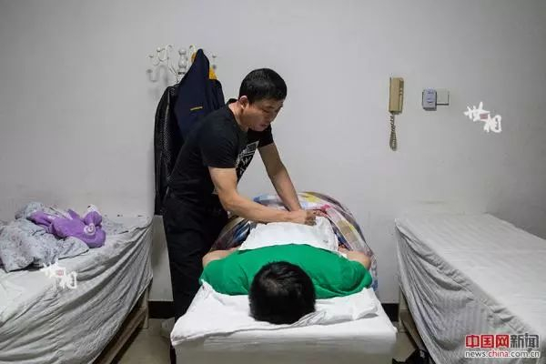 孙前军正在给顾客按摩腰椎。虽然看不见,凭借多年的经验,他能够准确找到患者的痛点,对症下药,帮助患者缓解病痛。