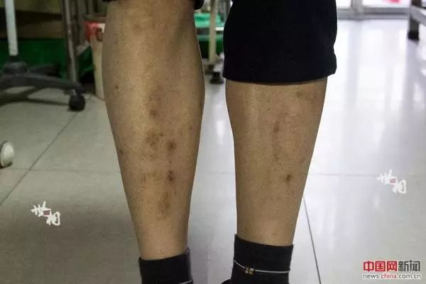 由于看不见,走路经常会撞到东西,孙前军的腿上留下了很多伤疤。