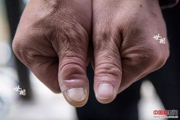 孙前军弯曲变形的大拇指。