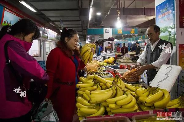 刘金枝从菜市场买菜回去。
