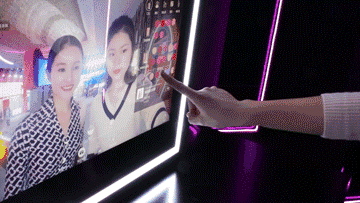 和“天猫试衣镜”类似,“天猫魔镜”同样也给用户带来了“虚拟试妆”的体验。只要当用户靠近“天猫魔镜”,图像就能捕捉她的脸部。