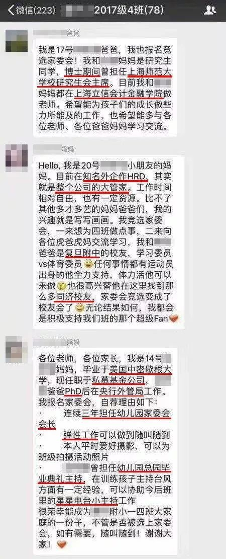 前些天,还是在上海,不少人的朋友圈被一张小学家长竞选家委会的聊天截图刷了屏。