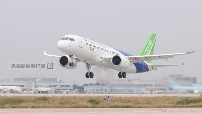 图拍摄自上海浦东机场,C919起飞