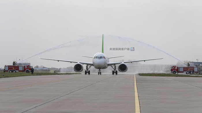 图拍摄自西安阎良机场,C919到达