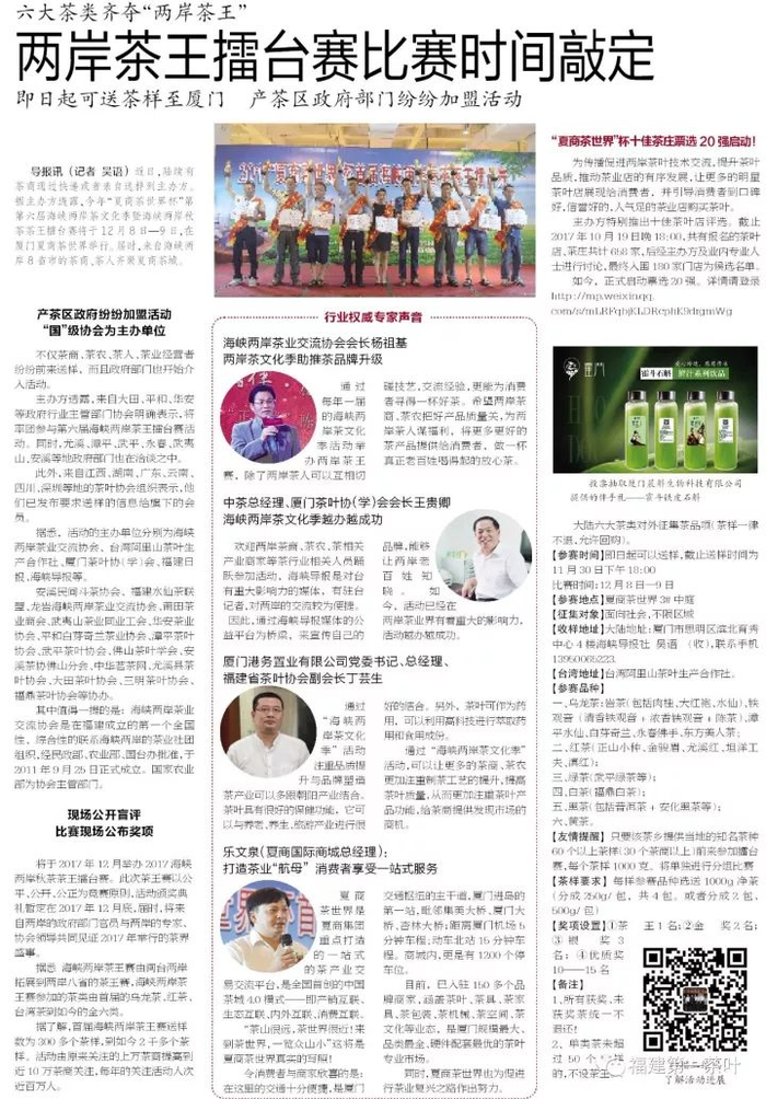 整个活动海峡导报将会报道至少5次以上,海峡导报茶周刊官微至少50次以上报道,