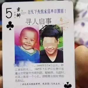 当年找儿子,得到好心人沈浩、潘淳的帮助,将信息印在了扑克牌上