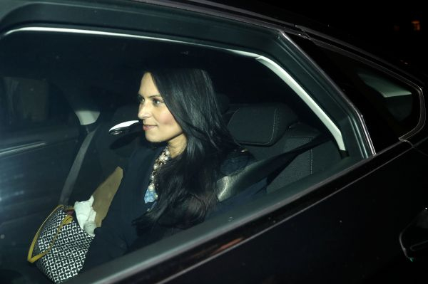 英国国际开发事务大臣普丽蒂·帕特尔8日乘车离开唐宁街首相府(法新社)