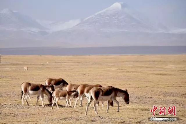 一群藏野驴在可可西里腹地觅食。 切嘎 摄