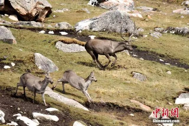 一大群野鹿在可可西里腹地觅食,场面壮观。 切嘎 摄