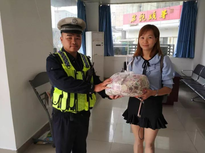 就在余焕等人忙着拾取纸币时,一名姓傅的女子来到现场称,散落的纸币是她遗失的。经核实,在星湖派出所内,余焕将纸币交还给失主傅小姐。