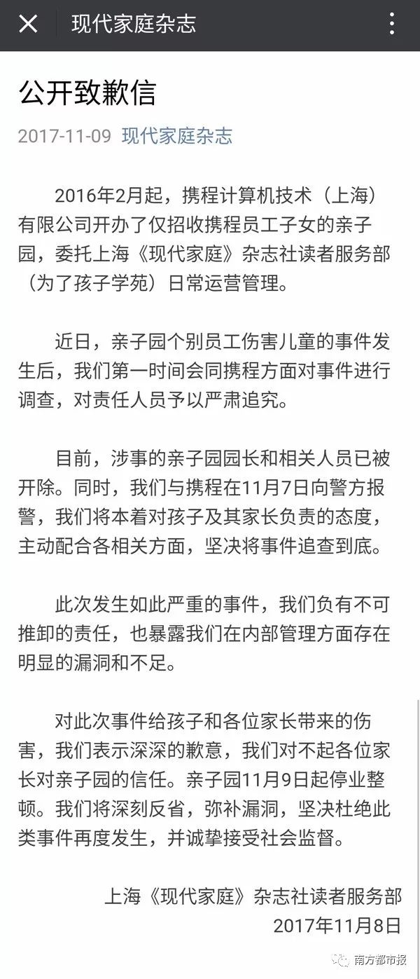 11月9日,经过内部详细调查取证,携程针对亲子园事件,说明如下: