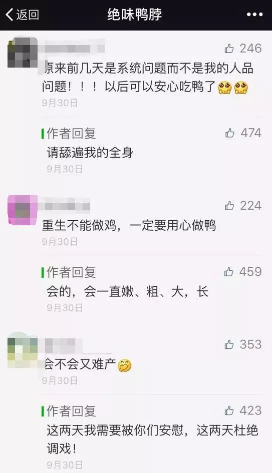 事实上,这早已不是绝味鸭脖第一次使用低俗营销。自2016年6月以来,绝味鸭脖不时推送一些标题低俗、封面图打马赛克的类似文章以博取眼球。而这些微信文章大多都是10万+的阅读量,留言回复也极尽低俗之词。