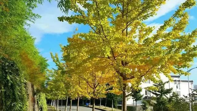住在呈贡的市民,如果觉得进城太远,可就近到云南师大呈贡校区观赏银杏,这里人行道两边和女生宿舍楼前都种有银杏树。