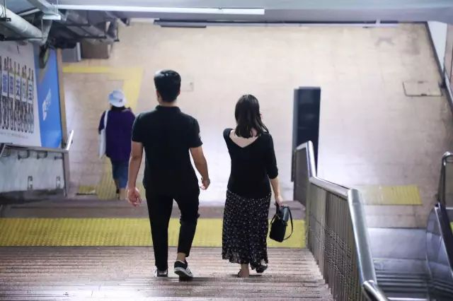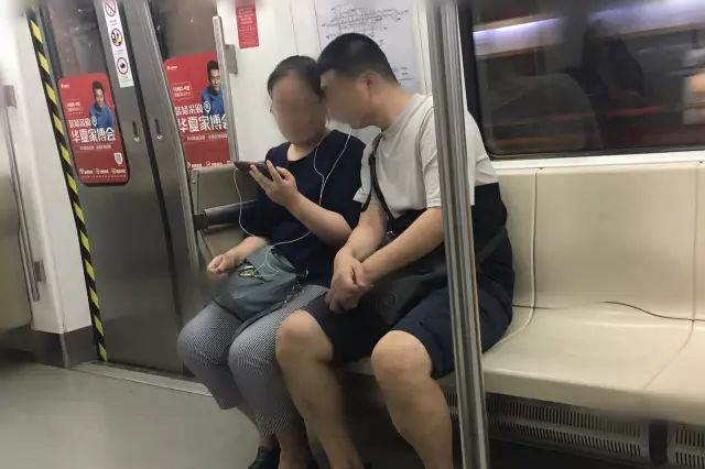 一对等地铁的情侣