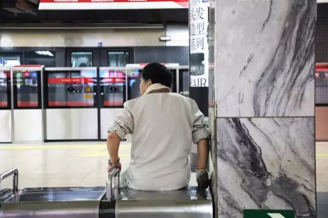 趁着地铁刚出发,他要停下来歇一会