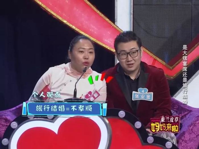 这开场小片一放完,性格直率的4号妈妈就坐不住了:“不办婚礼,你俩出去旅游,把我跟你爸撂家里?我觉着这就是不孝顺!”